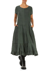 Robe en lin froncée Forest Mist