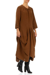 Cette robe au drapé élégant est confectionnée en lin naturel d'une couleur chaude. Portez-la en toute occasion, avec confort et fierté.