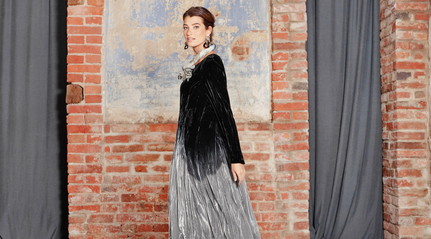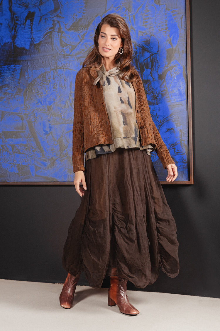 Gerüschter Chiffonrock aus gealterter Kupferseide