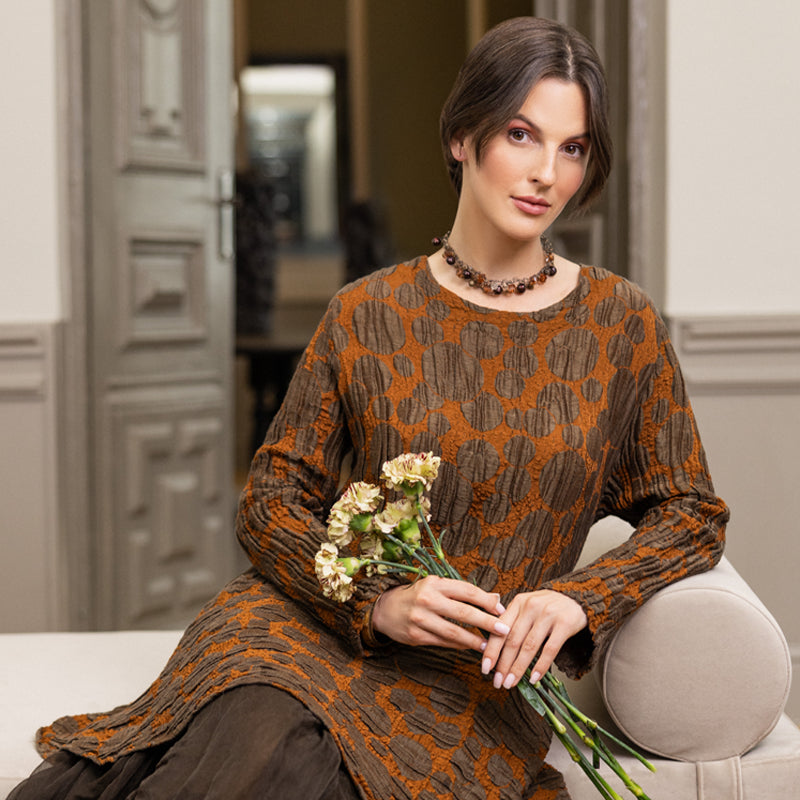 Kurze Jacke aus Seidenleinen mit gealterter Kupferstruktur