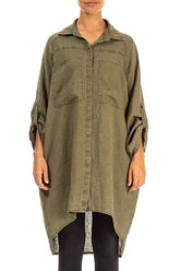 Dieses Hemd aus reinem Leinen in erdigem Khaki ist der Inbegriff natürlicher Mode und verfügt über vielseitige Ärmel, die lang oder 3/4-lang getragen werden können. Mit dem bequemen, längeren Rückenschnitt ist es sowohl strapazierfähig als auch stilvoll. Kombinieren Sie es mit Leggings oder Hosen für ultimativen Komfort.