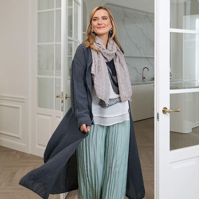 Wir haben dieses Kleidungsstück gewaschen, damit es seine Form und Größe behält und es auch nach weiteren Wäschen nicht wesentlich einläuft. Wir verwenden zertifizierte ökologische Waschmittel und Weichspüler.