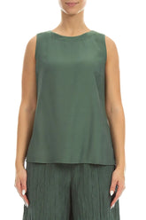 Ärmelloses, rückenfreies Top aus salbeifarbener Seide und Bambus