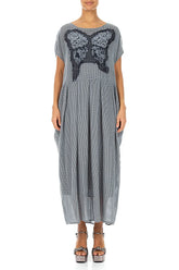 Dieses ätherische und sanft ausdrucksstarke Kleid strahlt eine leise festliche Stimmung aus. Die ausgestellte Silhouette fällt mühelos, während die Schmetterlingsapplikation einen skulpturalen Blickfang am Oberteil bildet. Dezente Taschen verleihen seiner Eleganz Leichtigkeit und machen es zu einem unverwechselbaren Stück für Feste und raffinierte Momente gleichermaßen.