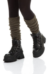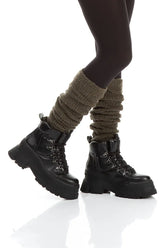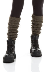 Beinstulpen aus khakifarbener Wolle im Zopfstrickmuster