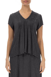 Bluse aus graphitfarbenem Seidenviskose mit V-Ausschnitt