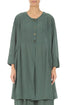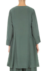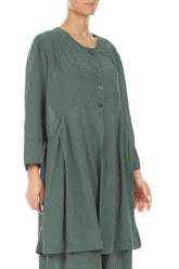 Geknöpfte, salbeigrüne Seidenjacke mit Strukturmuster