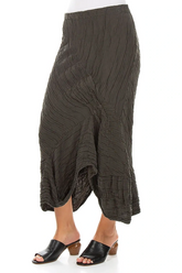 Geraffter, geknitterter, dunkelkhakifarbener Seidenleinenrock