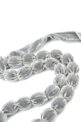 Diese handgefertigte Halskette aus Seidensamt ist perfekt für die elegante, umweltbewusste Frau. Jedes Unikat besteht aus zarten Perlen, die in luxuriösen Seidensamt gehüllt sind. Dadurch ist sie ein vielseitiges Accessoire und ein durchdachtes Geschenk, das Stil und Nachhaltigkeit auf wunderbare Weise vereint.