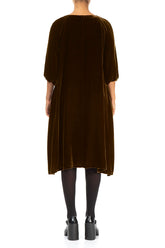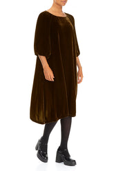 Kleid aus Seidensamt in Antik-Kupfer mit Bischofsärmeln