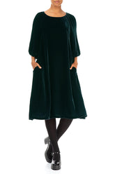 Dieses Kleid aus Seidensamt besticht durch seine lockere, ausgestellte Silhouette, die die feminine Ausstrahlung unterstreicht. Es ist aus weichem Seidensamt gefertigt, der beim Gehen wunderschön fällt. Kombinieren Sie das Kleid mit bequemen High Heels, Leggings oder passenden Accessoires.