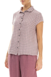 Kurzärmlige rosa karierte Leinenjacke