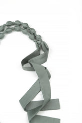 Lange, feine Perlenkette aus salbeifarbener Seide