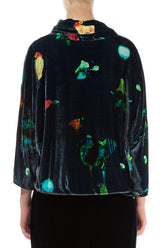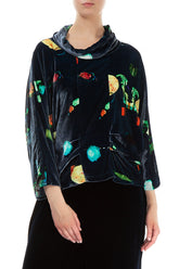 Märchenhafte Stretch-Seidensamtbluse mit Wasserfallausschnitt