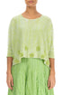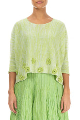 Mit Blumen verzierter melierter Leinenpullover in Limettengrün