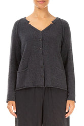 Nahtdetails Dunkelgraue Wollstrickjacke