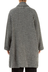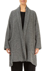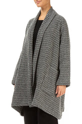 Diese offene Jacke/Mantel hat eine skulpturale, umhüllende Silhouette, die Ihnen das Gefühl gibt, in eine kuschelige Decke gehüllt zu sein. Die Jacke aus extraweichem, gemustertem Schurwollstoff, mit Seitentaschen und einem vielseitigen Grauton ist bequem und leicht zu stylen.