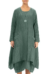 Seiden-Leinenjacke in Salbei mit abgerundetem Saum und Knittereffekt