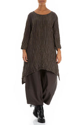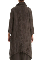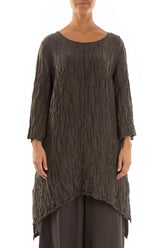 Tunika aus geknitterter, waldbrauner Seide und Leinen mit abnehmbarem Kragen