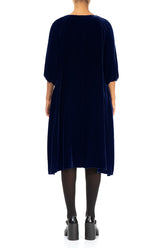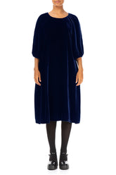 Bishop Sleeves Royal Blue Silk Velvet Dress