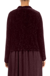 Buttoned Devoré Feather Merlot Silk Velvet Jacket