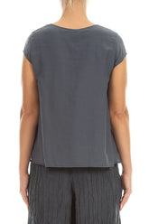 Cap Sleeves Graphite Silk Cotton Blouse