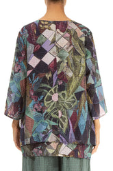 Layered 3/4 Sleeves Art Mosaic Textured Silk Blouse