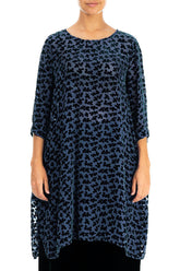 Loose Devoré Petals Royal Blue Silk Velvet Tunic