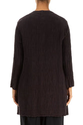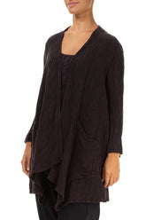 A lightweight silk jacket defined by a crinkled texture and open front. The loose silhouette allows natural movement and effortless layering, making it an easy statement piece for day or evening.