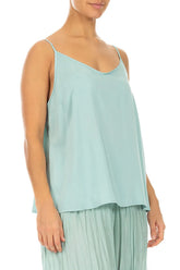 A strappy camisole silk top is a perfect fulfilment of any look. Cut from pure, soft-as-a-feather silk, this top has narrow straps and a subtle v-neck. Wear it with silky bottoms, feel comfortable and look stylish.