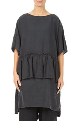 Tiered Graphite Linen Tunic Dress