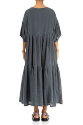 Tiered Graphite Textured Silk Dress