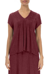 Discover the comfortable V-neck blouse crafted from a unique crinkled textured silk viscose blend. Detailed with gathered tucks front and pleated back, the blouse creates a sculptural relaxed silhouette that beautifully highlights the bust.