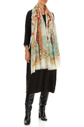 A masterpiece of artistry and elegance, the scarf captures the enchantment of a Venetian escape. Crafted from a luxurious cashmere silk, this airy yet warm accessory showcases an intricate print of historic canals, grand architecture, and sailing boats in a rich palette of hues. Finished with delicate frayed edges, it drapes beautifully over any ensemble, adding a refined touch of wanderlust and sophistication.