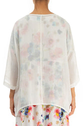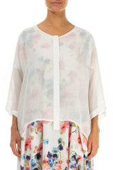 White Centre Placket Mesh Silk Jacket