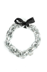 Sculptural wooden links in a soft silver tone create a necklace that instantly elevates even the simplest outfit. The loops move gently with you, catching the light while maintaining a beautifully understated matte sheen. A smooth leather cord adds contrast and comfort, while the snap fastener ensures an easy, secure fit. A versatile piece that pairs perfectly with minimalist dresses, knits or structured shirts.