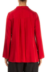 Cette chemise incarne une élégance discrète rehaussée d'une touche contemporaine. Sa teinte riche sublime le drapé fluide du tissu, tandis que le dos évasé crée un mouvement subtil et sculpte la silhouette. Dotée d'un col soigné et d'une fermeture boutonnée, c'est une pièce polyvalente qui se prête aussi bien à une tenue de jour raffinée qu'à une allure sophistiquée en soirée.