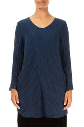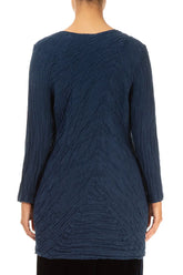 Chemisier en lin et soie bleu marine froissé à motif directionnel