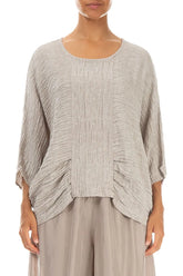 Ce chemisier ample à col bénitier et à la coupe décontractée est un incontournable intemporel que vous porterez pendant des années. Appréciez-le ; il est confectionné en lin et soie naturels à la texture froissée unique.