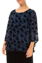 Chemisier en velours de soie bleu royal à effet dévoré superposé