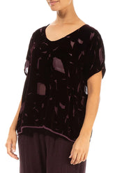 Chemisier en velours de soie bordeaux à motif et col en V