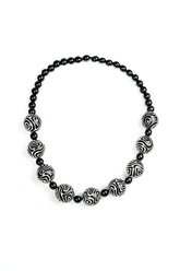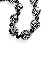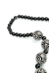 Un collier saisissant, composé de perles de bois aux contours noirs et blancs audacieux. Le doux tintement des perles au moindre mouvement confère au bijou une dimension tactile et vivante. Léger et agréable à porter, ce modèle offre une finition sculpturale et artistique qui sublime aussi bien les tenues du quotidien que les looks de soirée.