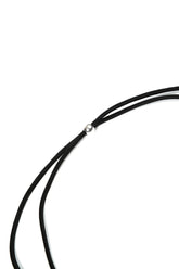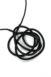 Un collier graphique audacieux en caoutchouc noir, orné d'un pendentif sculptural abstrait sur une cordelette ajustable. Léger et contemporain, il apporte une touche artistique à vos tenues du quotidien.