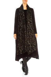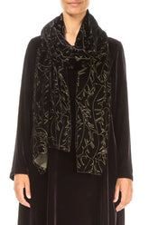 Écharpe en velours de soie à plumes dévorées noir et argent