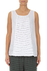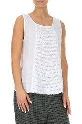 Douce et aérienne, cette blouse est confectionnée en lin respirant et ornée d'un délicat volant sur le devant qui apporte texture et mouvement. Sa coupe décontractée offre un confort optimal, tandis que le détail des volants superposés lui confère une touche subtile et romantique. Portée seule ou avec un pantalon, elle crée une allure à la fois décontractée et raffinée.