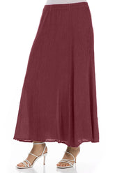 Découvrez un style décontracté avec cette jupe longue en soie-viscose froissée naturelle. Sa coupe fluide et longue, associée à une taille élastiquée confortable, vous assure une grande liberté de mouvement tout au long de la journée. Sa riche teinte rubis antique apporte une touche moderne et distinctive, empreinte de subtilité.
