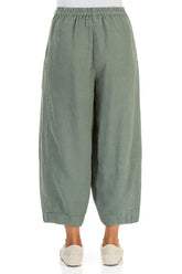 Pantalon court et large en lin sauge