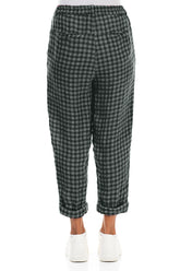 Pantalon en lin à carreaux sauge retroussable