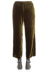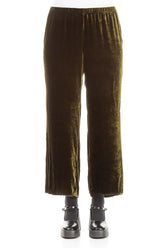 Confectionné dans un luxueux velours de soie à la coupe évasée, ce pantalon dégage une élégance discrète. Sa silhouette allongée souligne le raffinement, tandis que la douceur et la fluidité du velours assurent une grande liberté de mouvement et une allure distinguée et gracieuse.