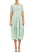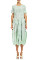 Fluide et discrètement expressif, cette robe à silhouette ballon est confectionnée en soie liquide, où la lumière et les tons pastel fusionnent pour créer une surface organique. Le tissu aérien froissé et la forme volumineuse génèrent un mouvement doux, épousant naturellement le corps. Chaque pièce est teinte individuellement, faisant de chaque robe une expression unique d'élégance discrète.